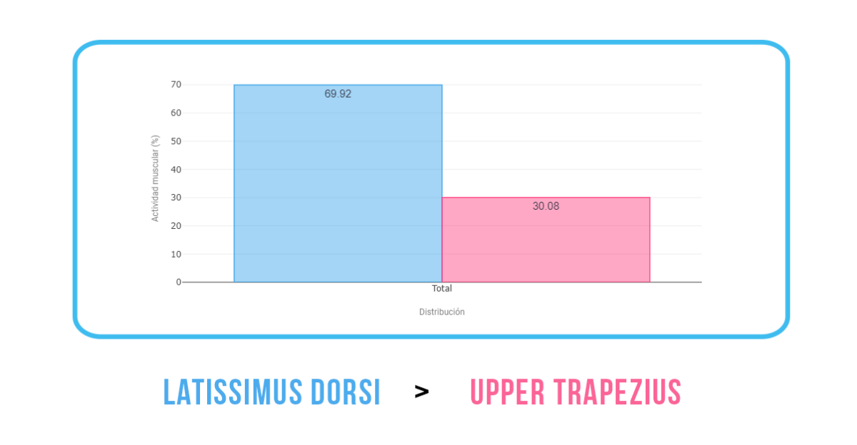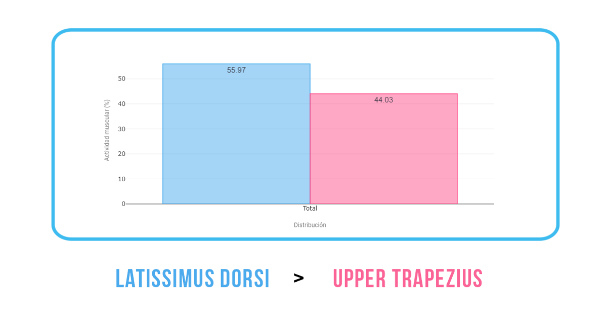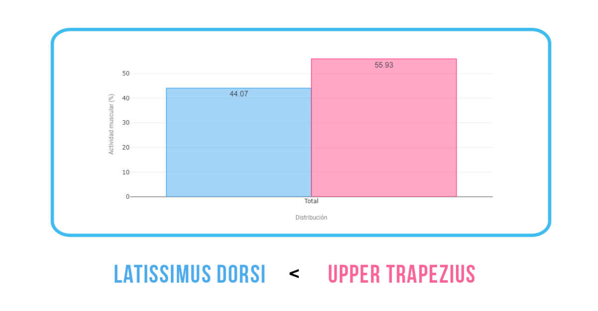 This higher trajectory forces the upper trapezius to intervene more intensely to stabilize and elevate the scapula. The result is an activation pattern where the upper trapezius dominates over the latissimus dorsi. In patients with chronic neck pain, this reinforces exactly the imbalance we are trying to correct.