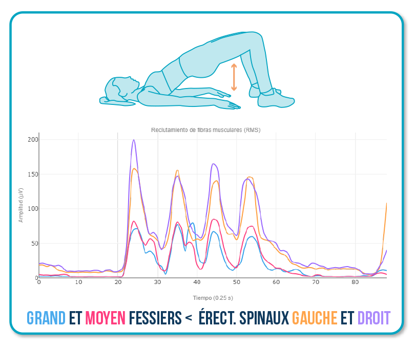 • – Utiliser le biofeedback EMG pour que le patient apprenne à augmenter l’activation fessière sans augmenter l’activation lombaire.