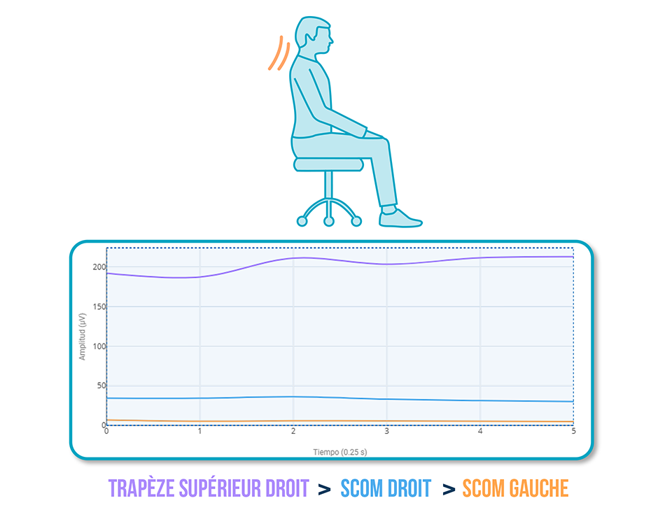 (X) Trapèze supérieur droit hyperactif → besoin du double d’activation que le côté opposé.